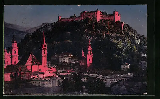 AK Salzburg, Festung Hohensalzburg im Scheinwerferlicht