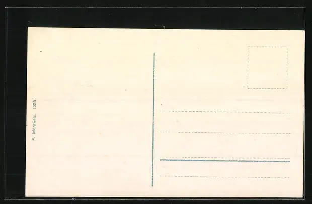 Personenbezogene Daten auf der Rückseite der Karte wurden durch blauen Textmarker unkenntlich gemacht. Die blauen Stellen sind auf die Vorderseite durchgeweicht und wirken sich negativ auf das Postkartenfoto aus