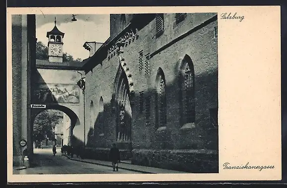 AK Salzburg, Franziskanergasse mit Torturm, Strassenpartie