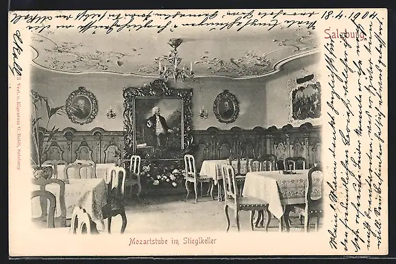 AK Salzburg, Gasthof Stieglkeller, Cafe in der Mozartstube