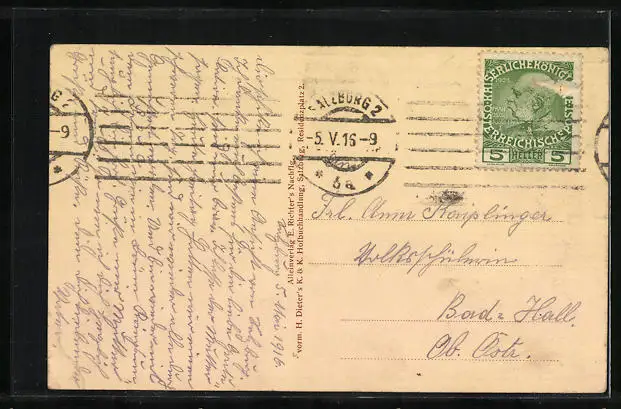 alte Ansichtskarte, gelaufen 1916, Eckknicke unten, guter Zustand