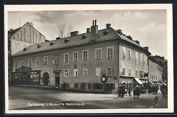 AK Salzburg, L. Mozart`s Wohnhaus, Strassenpartie