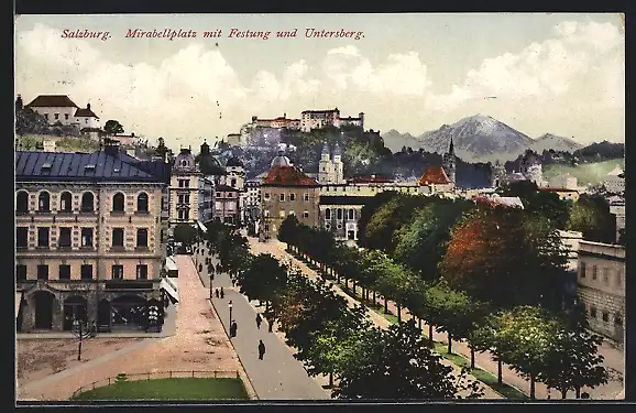 AK Salzburg, Mirabellplatz mit Geschäften