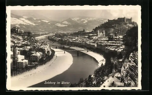 AK Salzburg, Ortsansicht aus der Vogelschau im Winter
