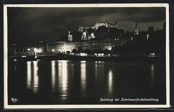 AK Salzburg, Ortspartie bei Scheinwerferbeleuchtung