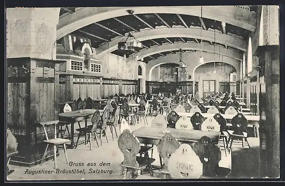 AK Salzburg, Restaurant Augustiner-Bräustübl, Innenansicht
