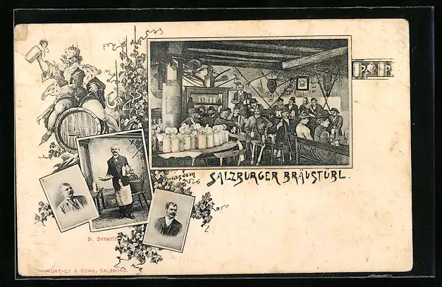 AK Salzburg, Salzburger Braustübl v. S. Severin, Innenansicht