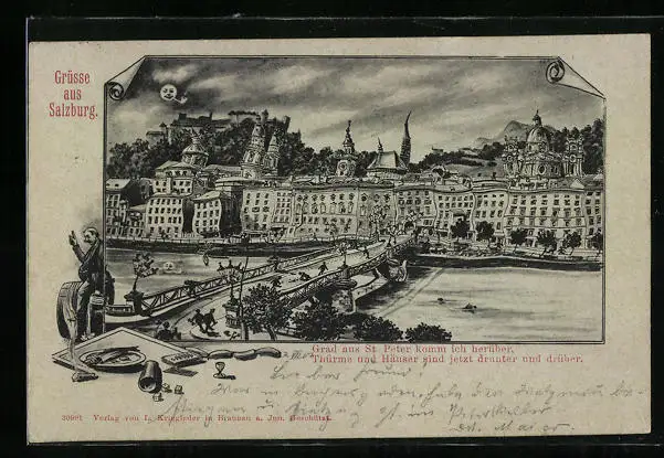 AK Salzburg, Stadt aus der Sicht eines Betrunkenen