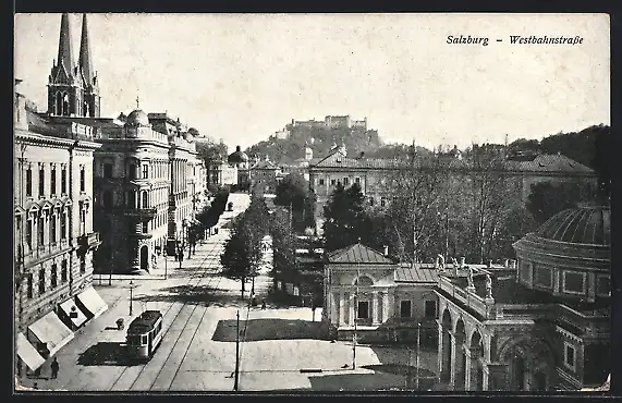 AK Salzburg, Strassenbahn in der Westbahnstrasse