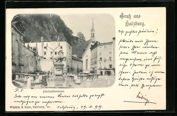 AK Salzburg, Strassenpartie mit Pferdeschwemme