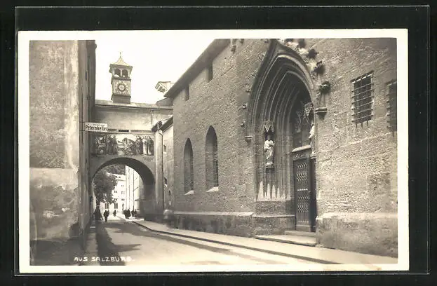 AK Salzburg, Strassenpartie mit Restaurant Zum Peterskeller
