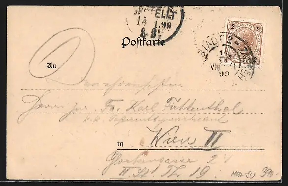 gelaufen 1899, Stempelspur, Bugspur li. mittig, guter Zustand