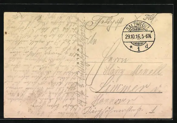 alte Ansichtskarte, gelaufen 1916, Eckknicke unten, Einriss re. oben, guter Zustand