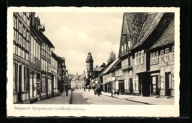 AK Salzwedel, Neuperver Strasse mit Rathausturm