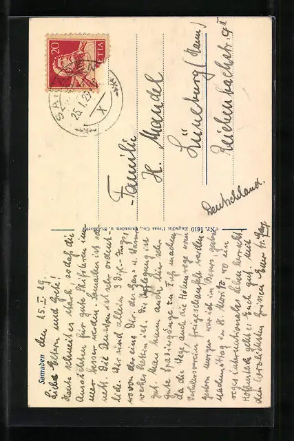 alte Ansichtskarte, gelaufen 1929, Briefmarke tw. entfernt, rückseitig Oberflächenschaden, guter Zustand