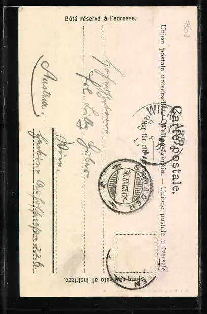 alte Ansichtskarte, gelaufen 1905, Briefmarke entfernt, guter Zustand
