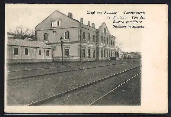 AK Sambor, Von den Russen zerstörter Bahnhof