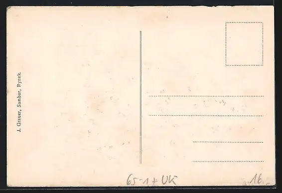Personenbezogene Daten auf der Rückseite der Karte wurden durch blauen Textmarker unkenntlich gemacht. Die blauen Stellen sind auf die Vorderseite durchgeweicht und wirken sich negativ auf das Postkartenfoto aus