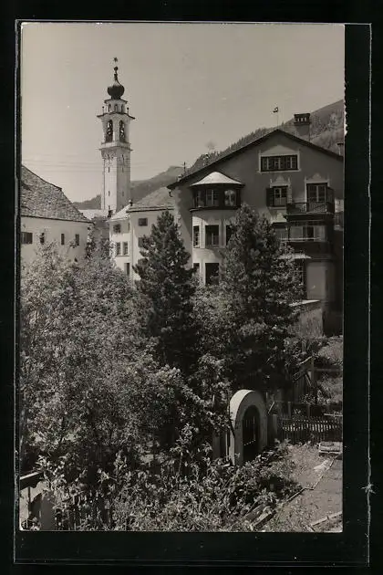 AK Samedan, Ortspartie mit Blick zum Kirchturm