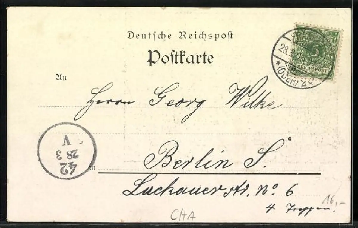 alte Ansichtskarte, gelaufen 1900, guter Zustand