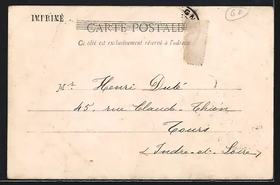 Personenbezogene Daten auf der Rückseite der Karte wurden durch blauen Textmarker unkenntlich gemacht. Die blauen Stellen sind auf die Vorderseite durchgeweicht und wirken sich negativ auf das Postkartenfoto aus