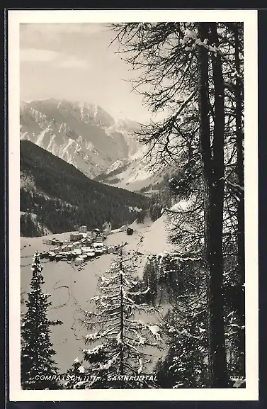 AK Samnaun, Compatsch im Samnauntal, Ortsansicht aus der Ferne
