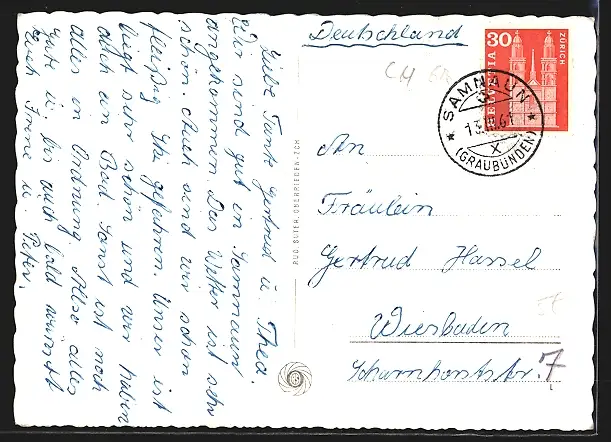 gelaufen 1961, Eckknick re. oben, guter Zustand