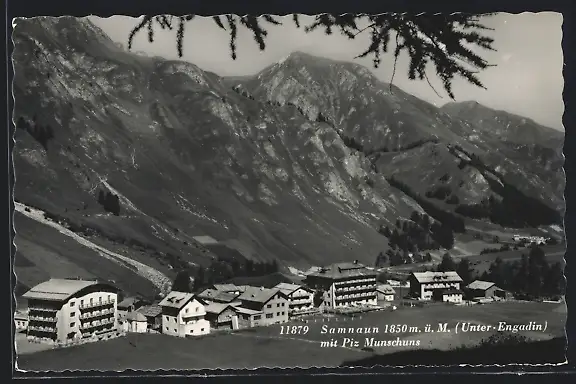 AK Samnaun (Unter-Engadin), Ortsansicht mit Piz Munschuns