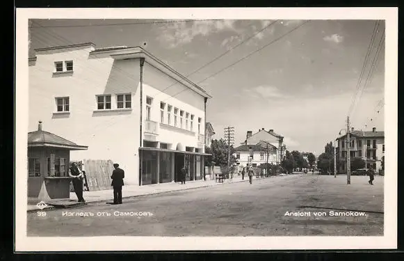 AK Samokow, Strassenpartie mit Gebäuden und Zeitungsstand
