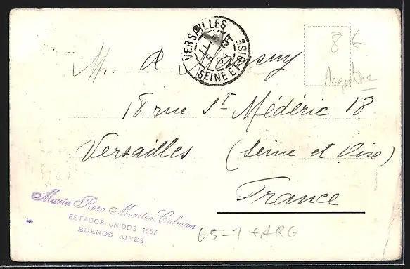 Personenbezogene Daten auf der Rückseite der Karte wurden durch blauen Textmarker unkenntlich gemacht. Die blauen Stellen sind auf die Vorderseite durchgeweicht und wirken sich negativ auf das Postkartenfoto aus