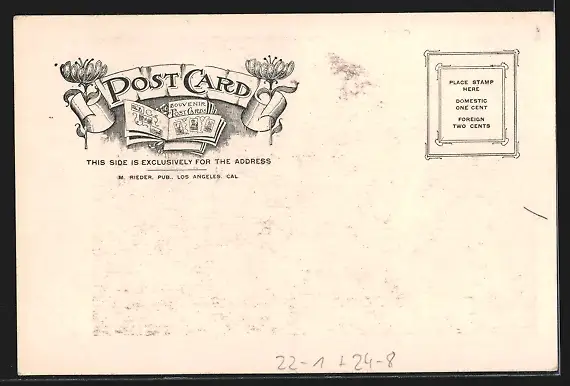 Personenbezogene Daten auf der Rückseite der Karte wurden durch blauen Textmarker unkenntlich gemacht. Die blauen Stellen sind auf die Vorderseite durchgeweicht und wirken sich negativ auf das Postkartenfoto aus