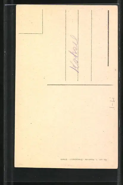 Personenbezogene Daten auf der Rückseite der Karte wurden durch blauen Textmarker unkenntlich gemacht. Die blauen Stellen sind auf die Vorderseite durchgeweicht und wirken sich negativ auf das Postkartenfoto aus