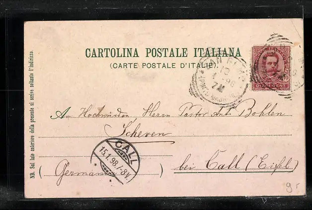 gelaufen 1898, Eckknick oben links, guter Zustand