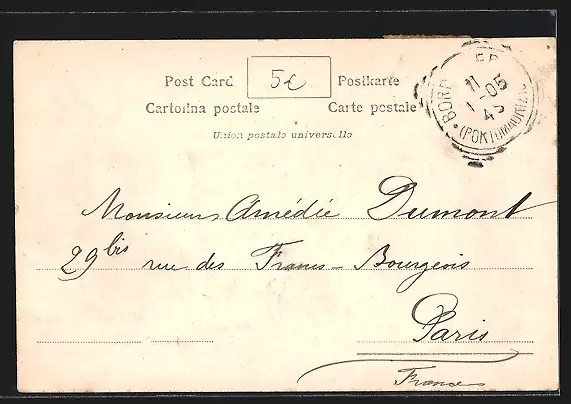 Personenbezogene Daten auf der Rückseite der Karte wurden durch blauen Textmarker unkenntlich gemacht. Die blauen Stellen sind auf die Vorderseite durchgeweicht und wirken sich negativ auf das Postkartenfoto aus