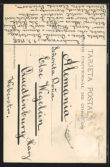 alte Ansichtskarte, gelaufen 1908, Briefmarke entfernt, rückseitig Oberflächenschaden, Einriss li. oben, guter Zustand