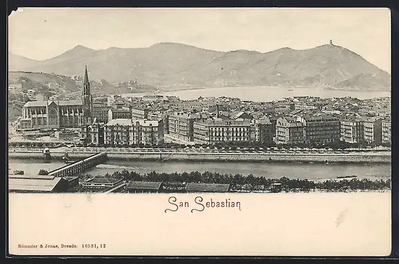 AK San Sebastian, Totalansicht gegen die Berge