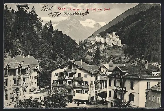 AK Sand in Taufers, Gasthof zur Post mit Post-Villa
