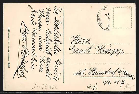 alte Ansichtskarte, gelaufen, Briefmarke entfernt, guter Zustand