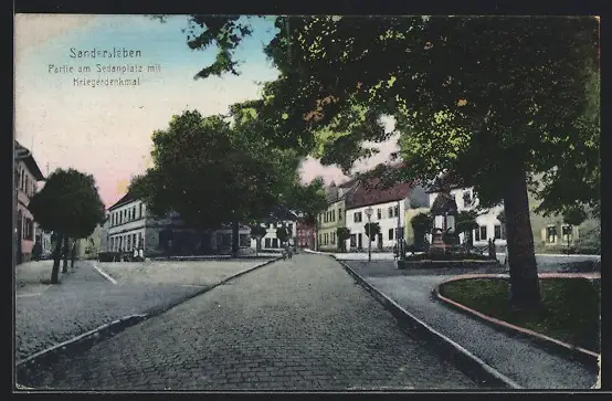 AK Sandersleben, Partie am Sedanplatz mit Kriegerdenkmal
