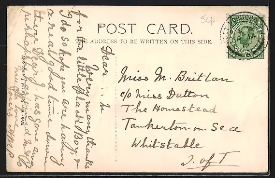 alte Ansichtskarte, gelaufen 1912, Eckknicke re. oben u. li., Einriss li. mittig, guter Zustand
