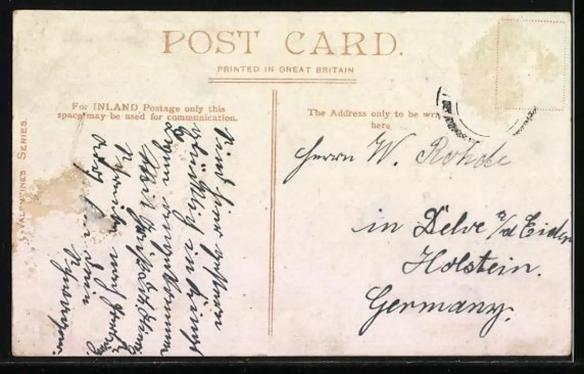 alte Ansichtskarte, gelaufen, Briefmarke entfernt, rückseitig Oberflächenschaden, Eckknick re. oben, guter Zustand