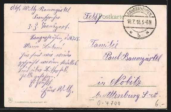 alte Ansichtskarte, gelaufen 1918, guter Zustand