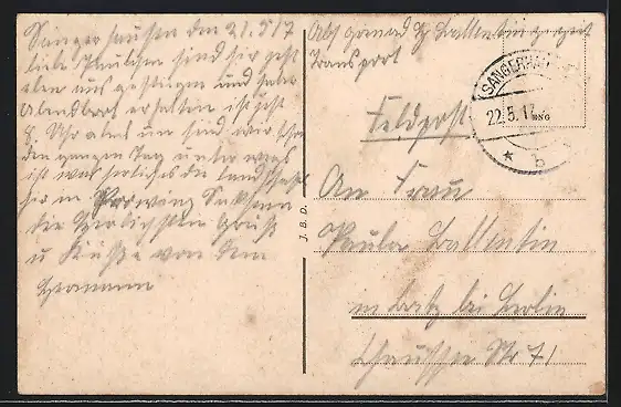 alte Ansichtskarte, gelaufen 1917, Briefmarke entfernt, guter Zustand