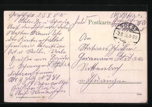 alte Ansichtskarte, gelaufen 1915, Eckknick unten rechts, guter Zustand