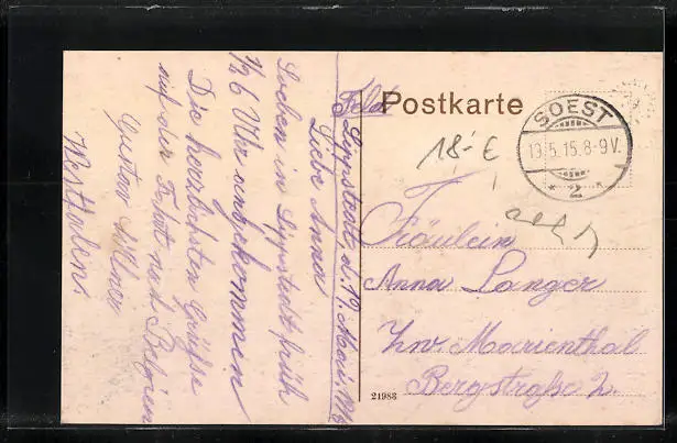 alte Ansichtskarte, gelaufen 1915 als Feldpost, guter Zustand