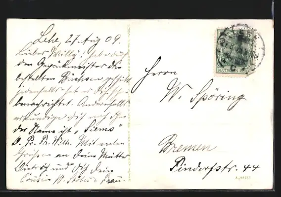 alte Ansichtskarte, gelaufen 1909, guter Zustand