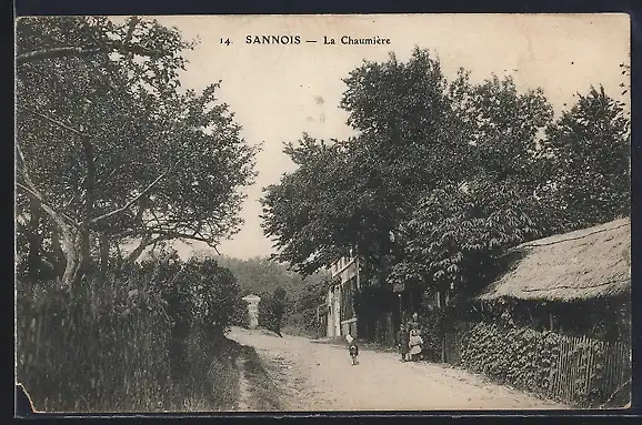 AK Sannois, La Chaumière et chemin bordé d`arbres