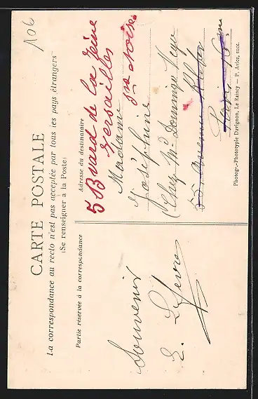 Personenbezogene Daten auf der Rückseite der Karte wurden durch blauen Textmarker unkenntlich gemacht. Die blauen Stellen sind auf die Vorderseite durchgeweicht und wirken sich negativ auf das Postkartenfoto aus