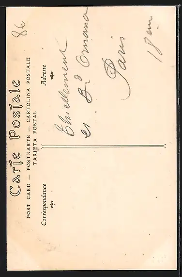 Personenbezogene Daten auf der Rückseite der Karte wurden durch blauen Textmarker unkenntlich gemacht. Die blauen Stellen sind auf die Vorderseite durchgeweicht und wirken sich negativ auf das Postkartenfoto aus