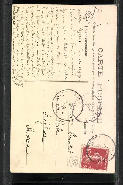 gelaufen 1908, leicht fleckig, Eckknick re. unten, sonst guter Zustand